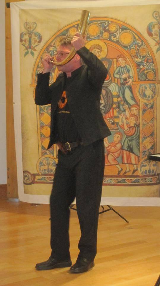 Deze trompet werd gebouwd van twee soorten materiaal:(1)tot aan 100 na Chr. van brons en als zodanig verwant aan de Keltische Karnyx, waarbij de beker een dierlijke kop uitbeeldde.